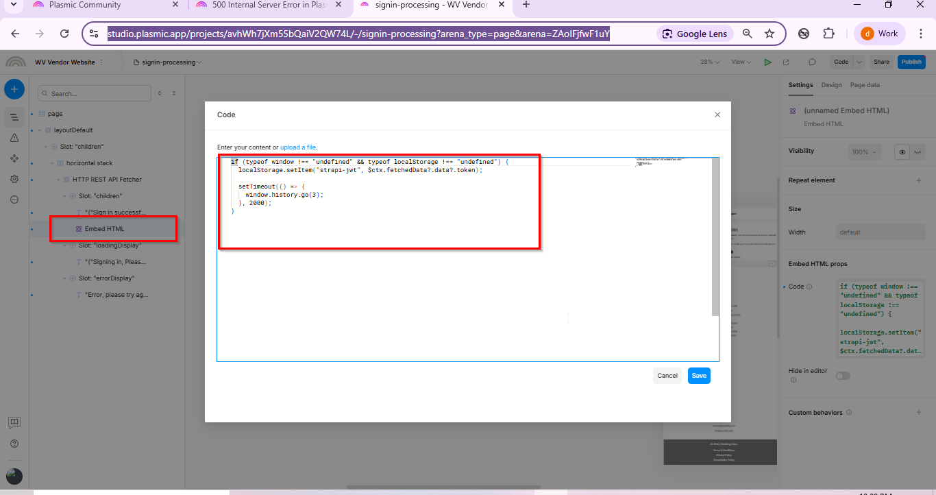 I think this issue is somewhat related to userinfo logic I have implemented. Earlier also I was having this issue, Solution was provided by the plasmic team.
