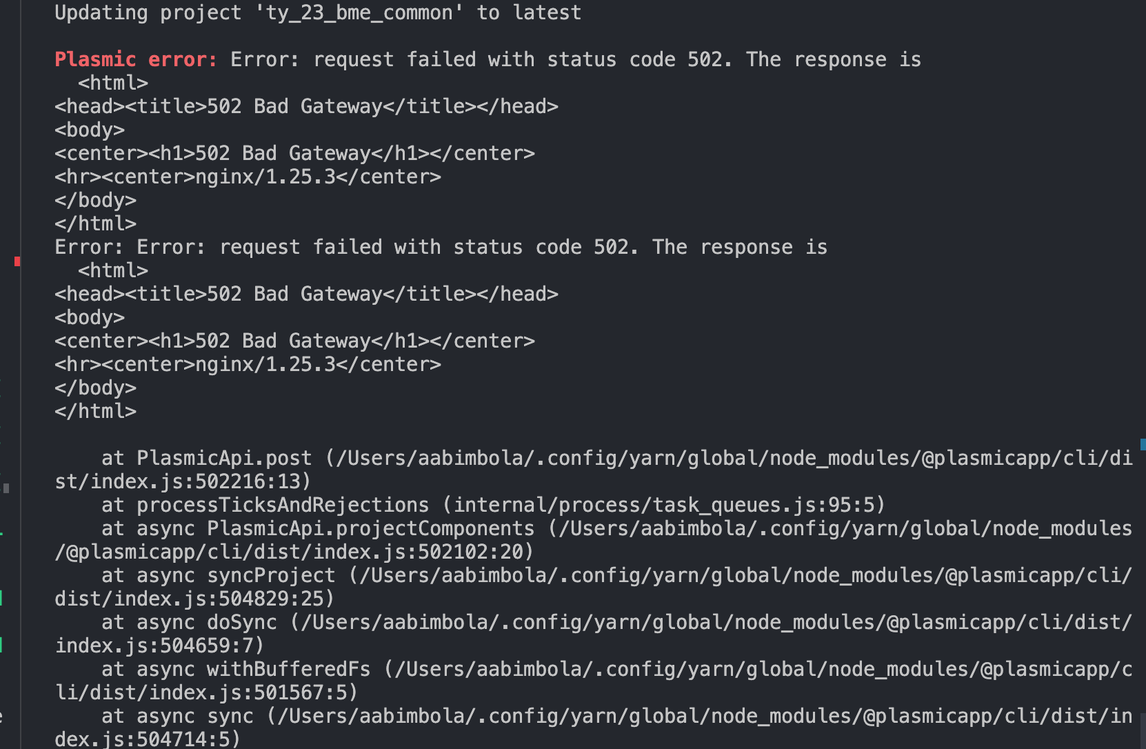 Hey guys experience 502 error when trying to sync