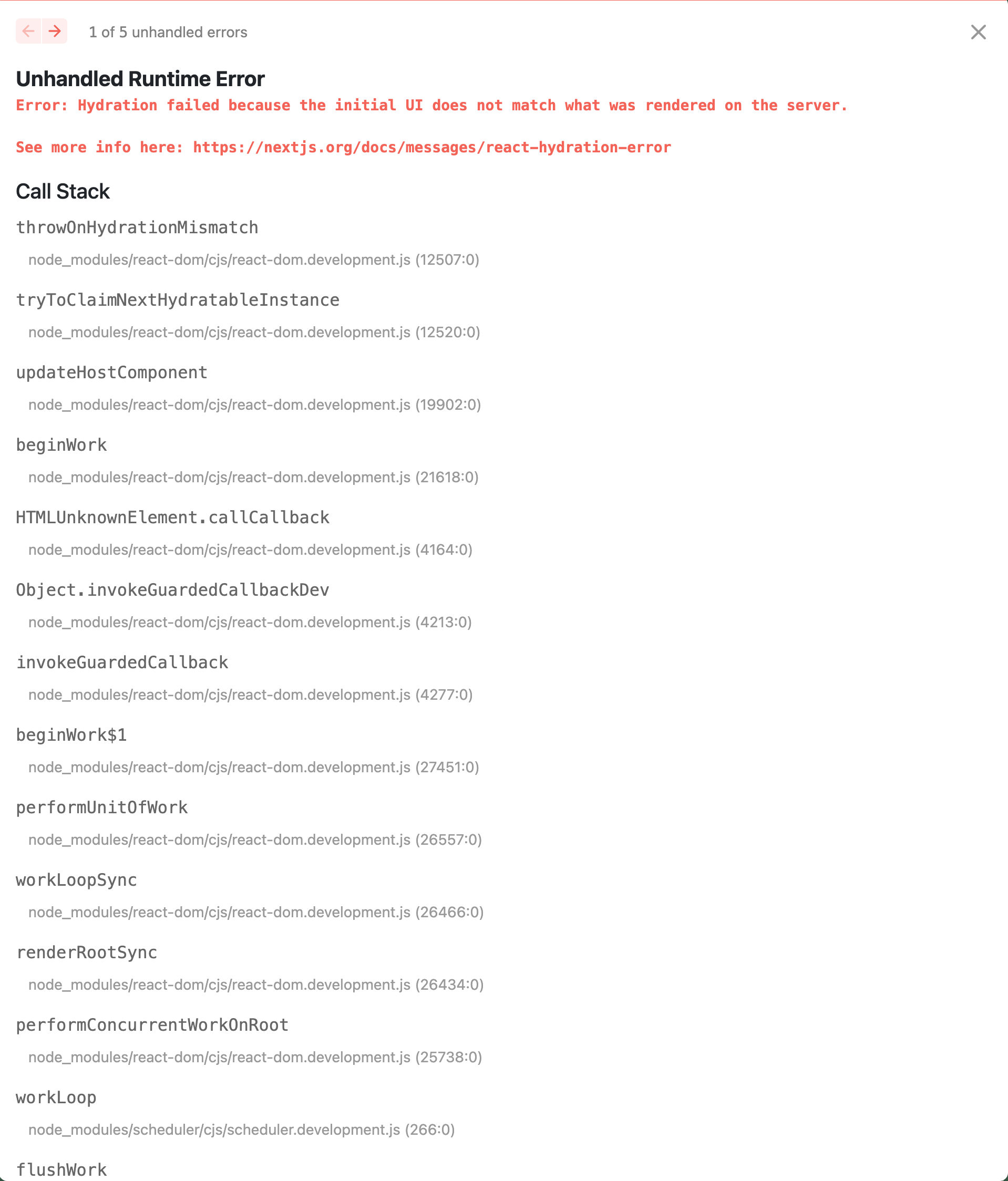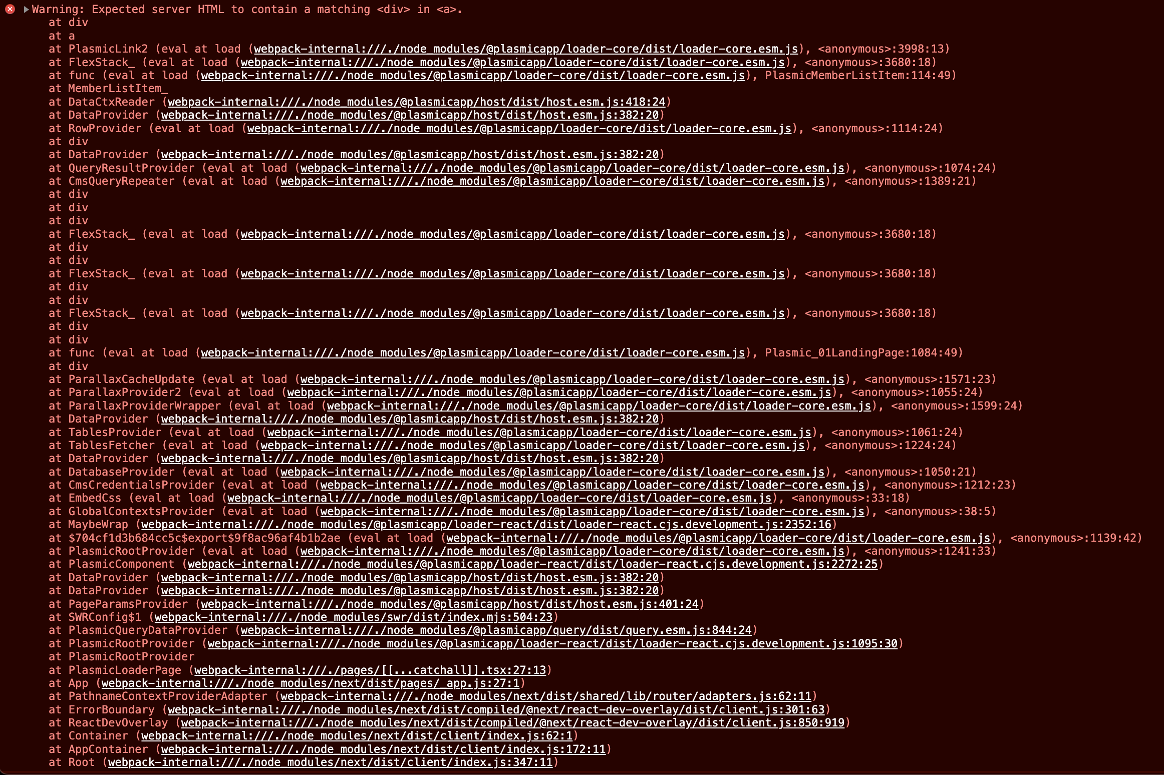 Hello, I’ve been trying to setup a project which uses Plasmic CMS using Next.js. I’ve set up the Next.js project and configured the Plasmic loader and nothing else so far. However, all pages that use CMS elements raise a hydration error. The client-side rendered page looks fine. Do I need to setup something to have the CMS produce consistent data also server-side?