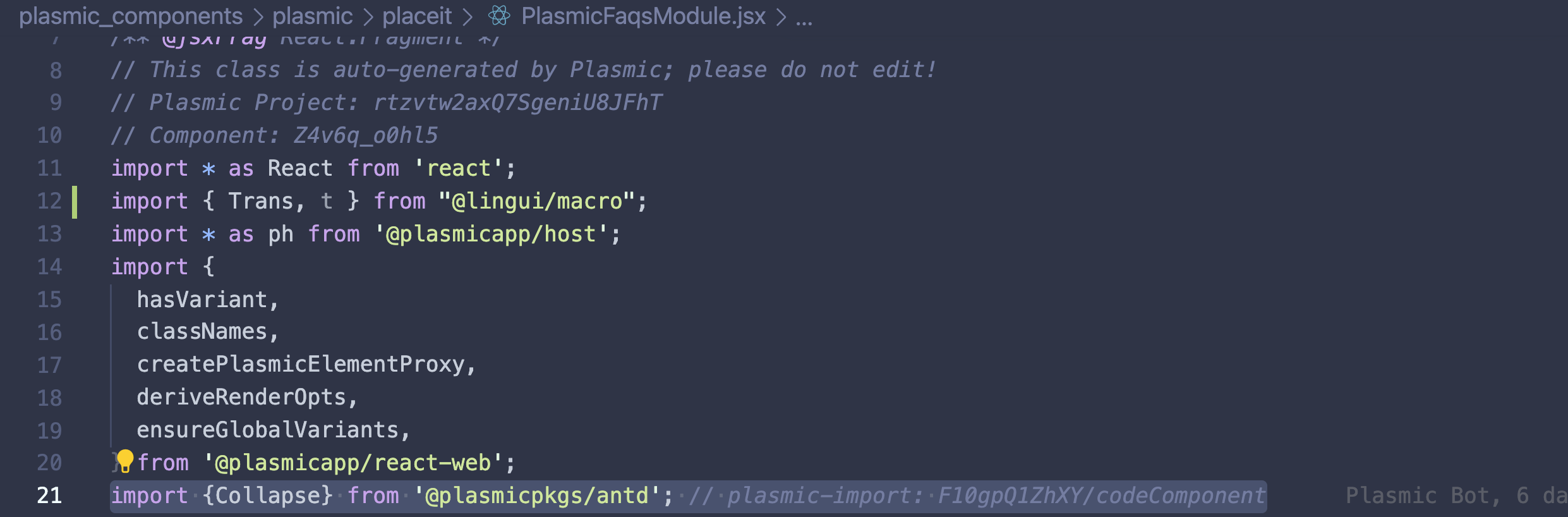 oh! I see; then you shouldn’t need to do anything there. If you upgrade your @plasmicpkgs/antd package, and do a plasmic sync you should see that the generated code should be importing Collapse from @plasmicpkgs/antd/skinny/registerCollapse now instead