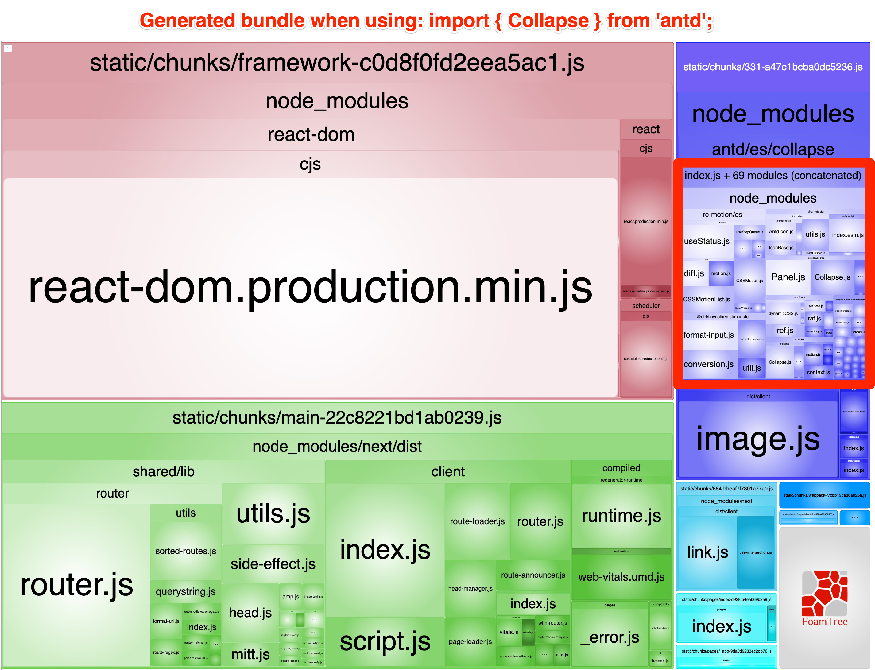 but using the Antd dependency directly, like import { Collapse } from 'antd' will result in an optimized bundle with only used dependencies included (treemap screenshot also attached)