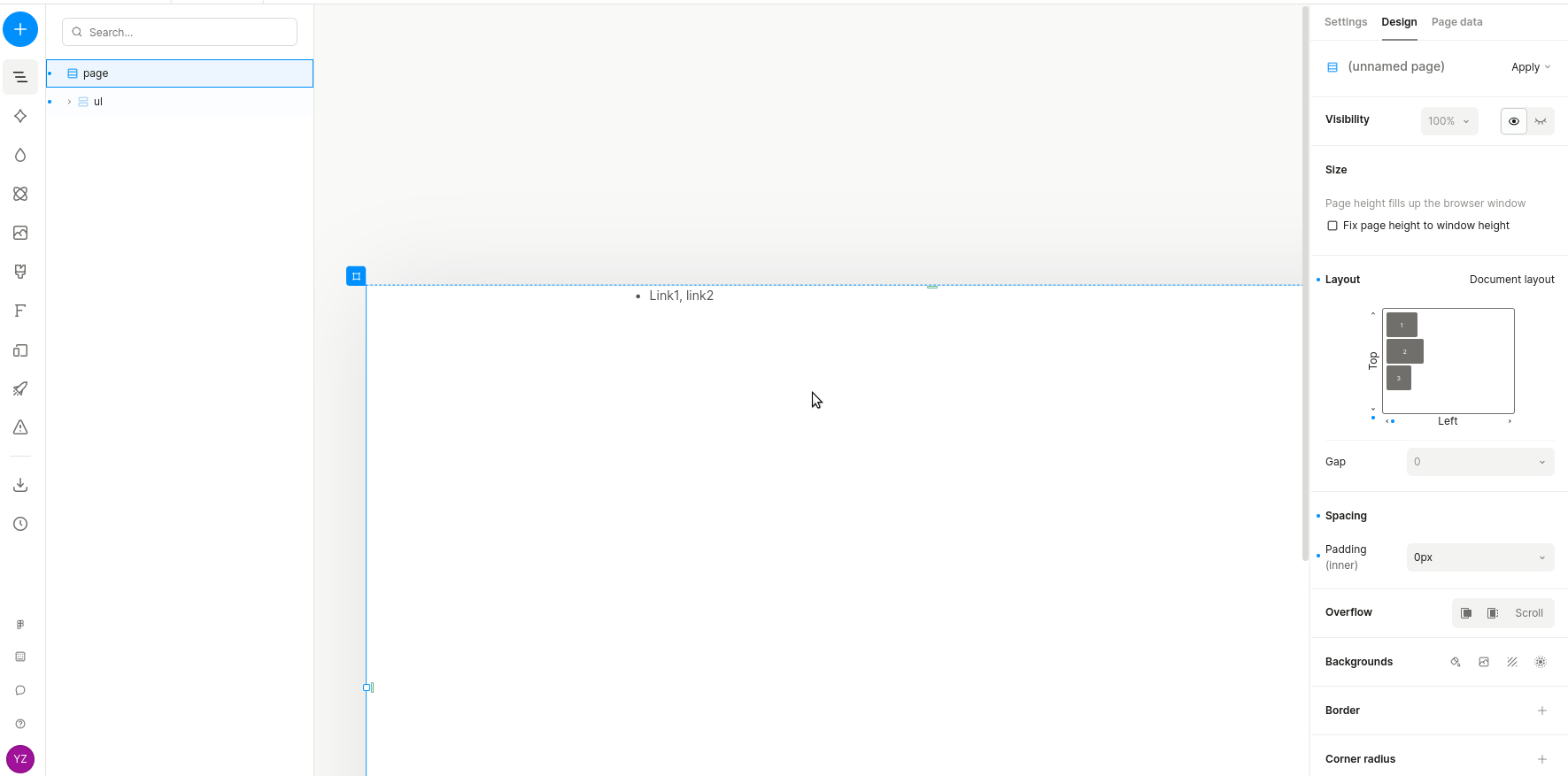Oh for links, I think you can just have them inside your text elements (selecting the text and pressing Cmd + K)! Like this: