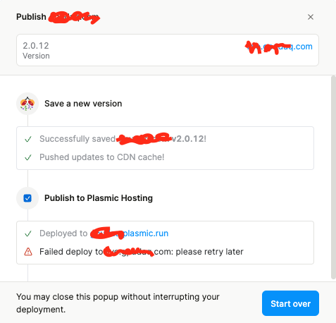 “Failed deploy to xxx.yyyyyy.com : please retry later”