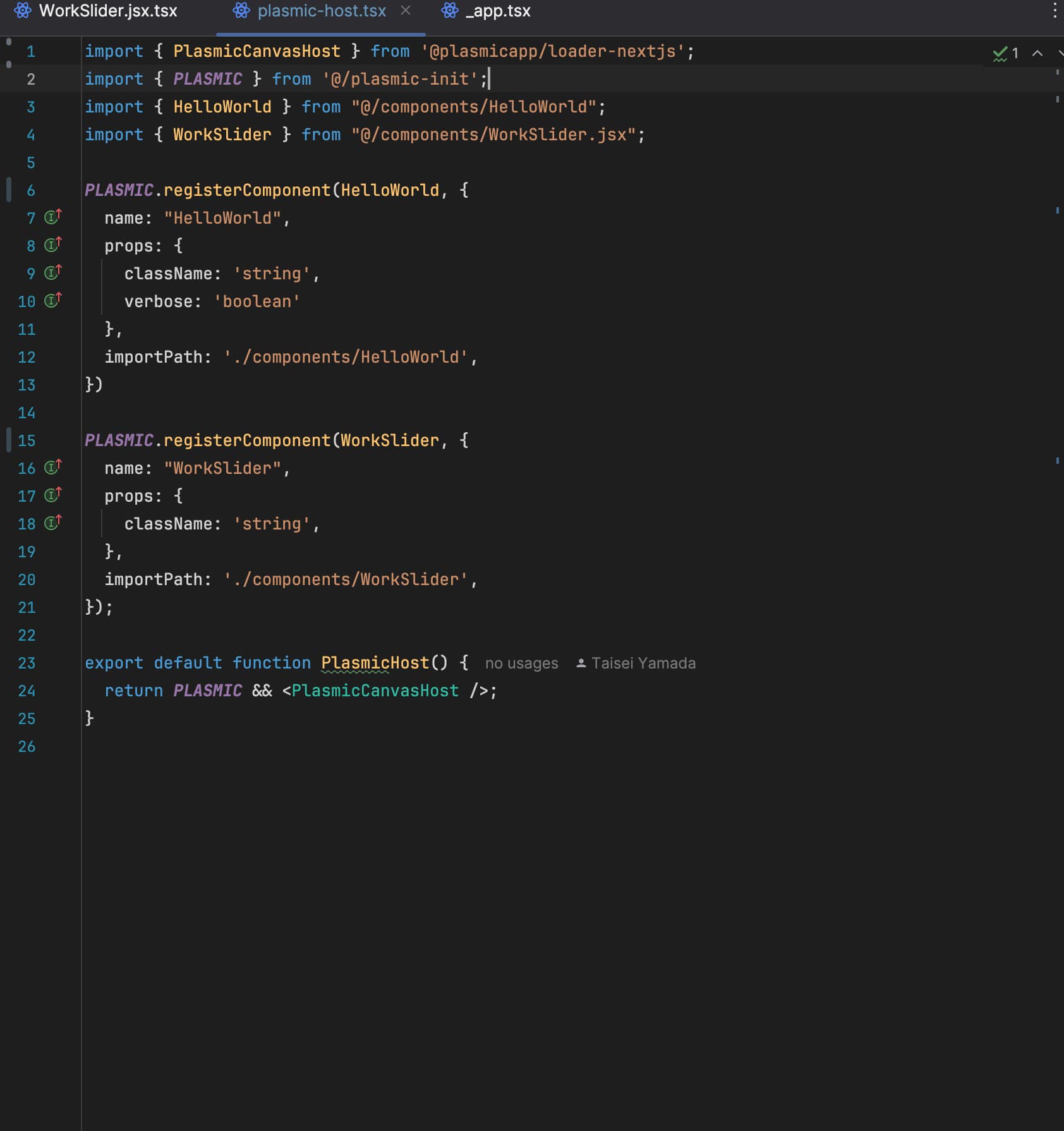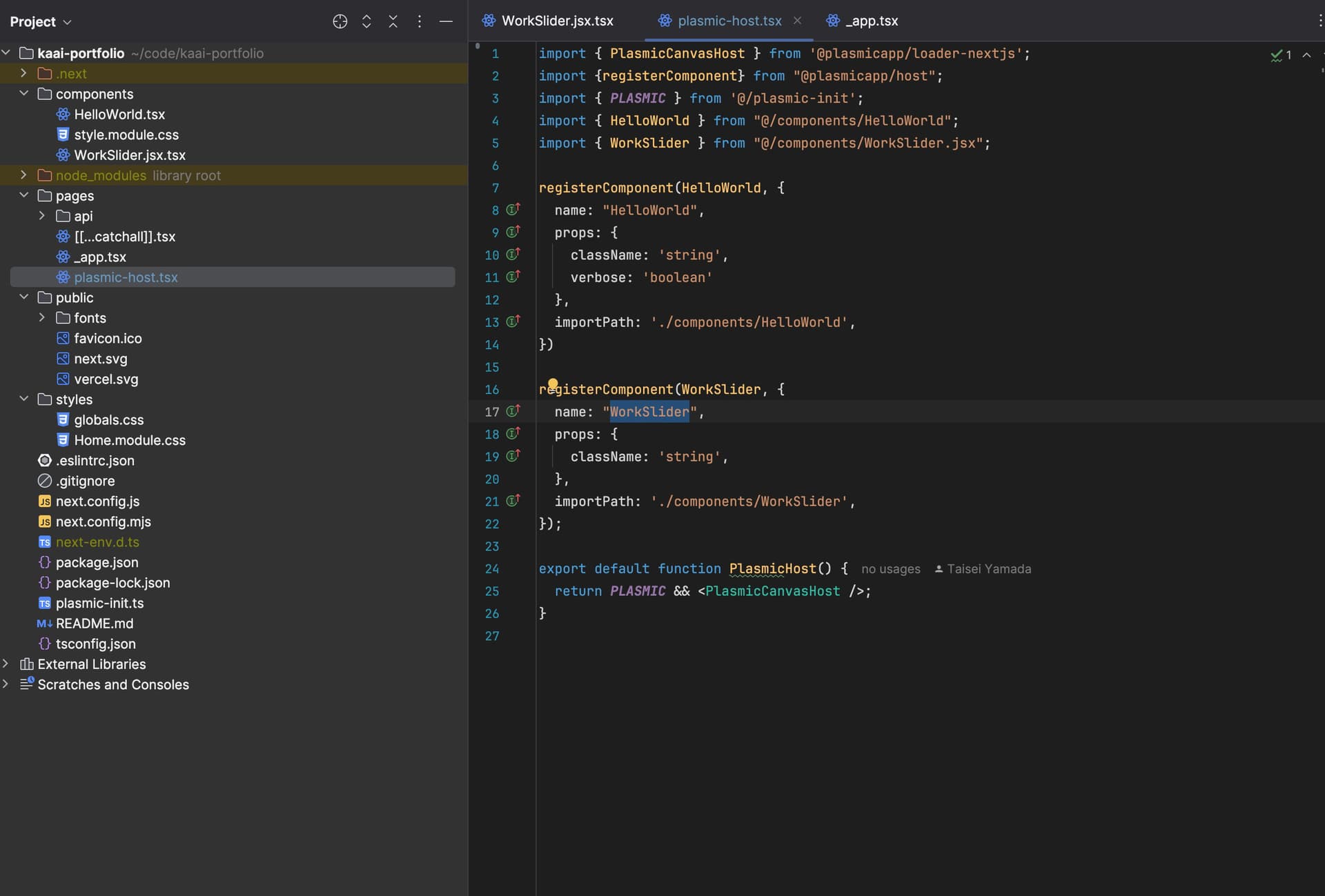 Looking at the plasmic-host file, it seems that the import path for WorkSlider is wrong. Try removing the .jsx at the end. Also, I would recommend moving the registration to plasmic-init.