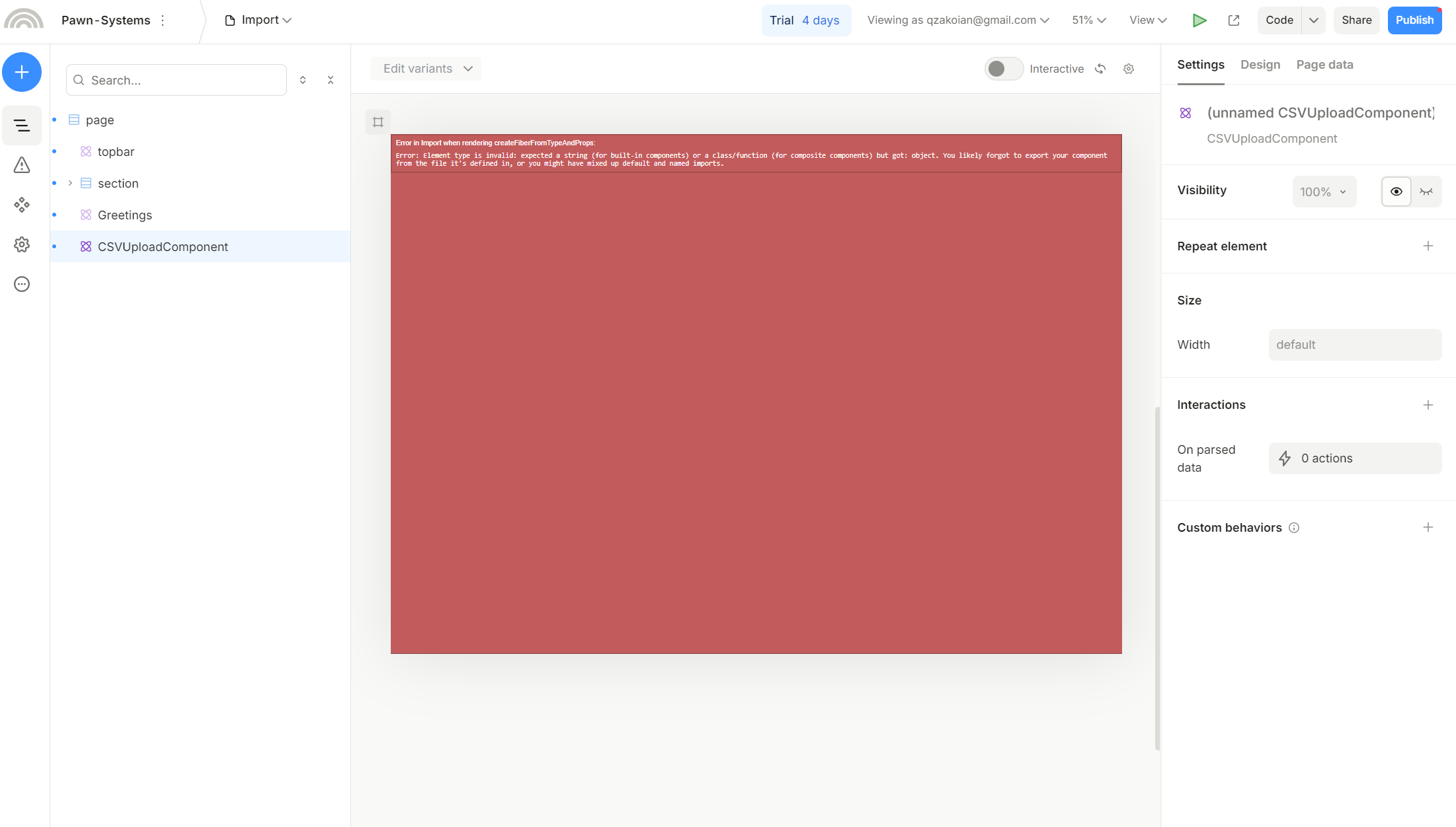 importPath: './components/CSVUploadComponent', // Ensure the correct import path