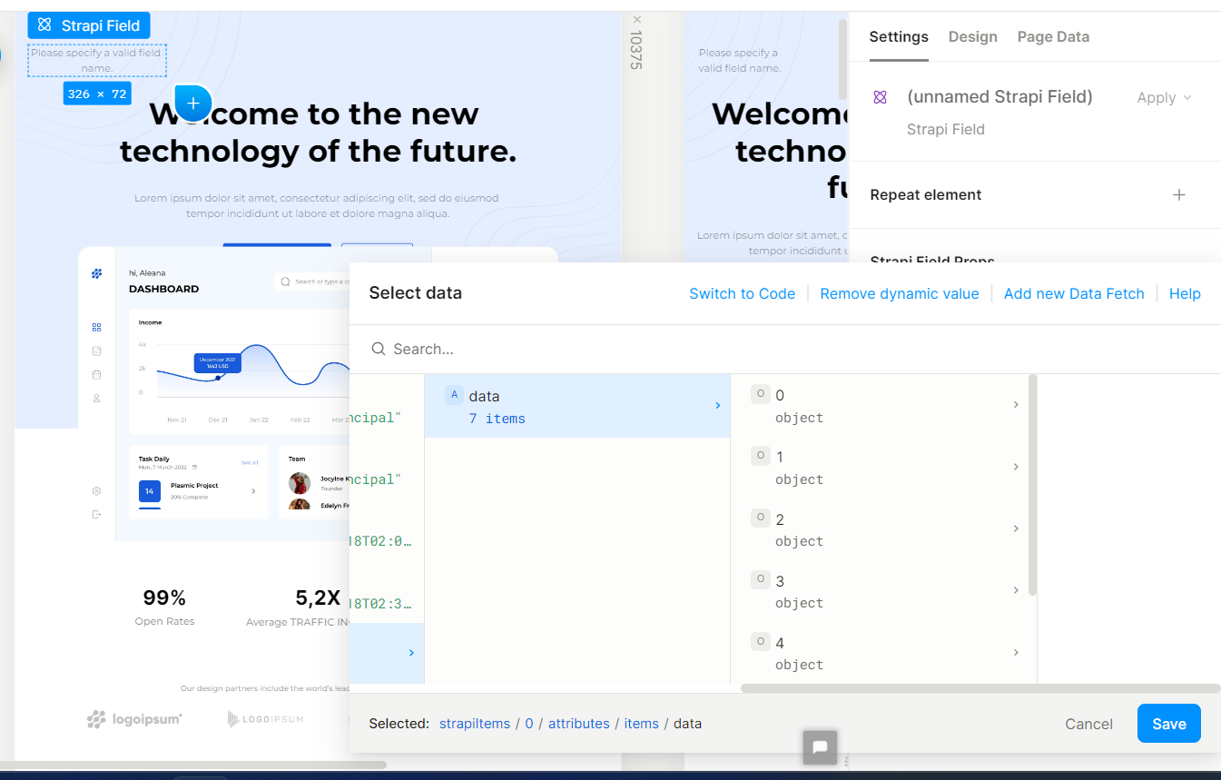 hi i got plasmic with strapi integrated, i would like to create the menu but with strapi, plasmic supports that kind of integration? i know plasmic can show strapi fields, but i installed menu plugin from strapi and its not working i mean the menu is not getting shown. What you guys recommend me ? to have my menu dynamic