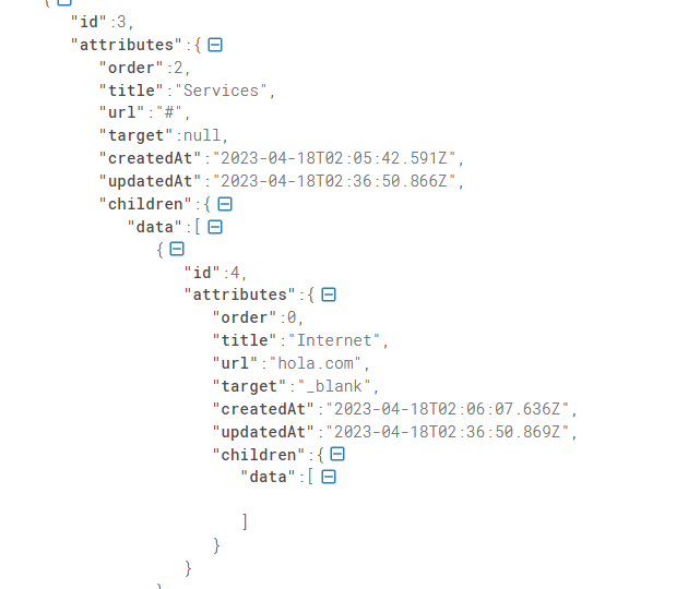 https://strapi.dbsnetwork.net/api/menus/1?nested&populate=* this will be the menu, nested