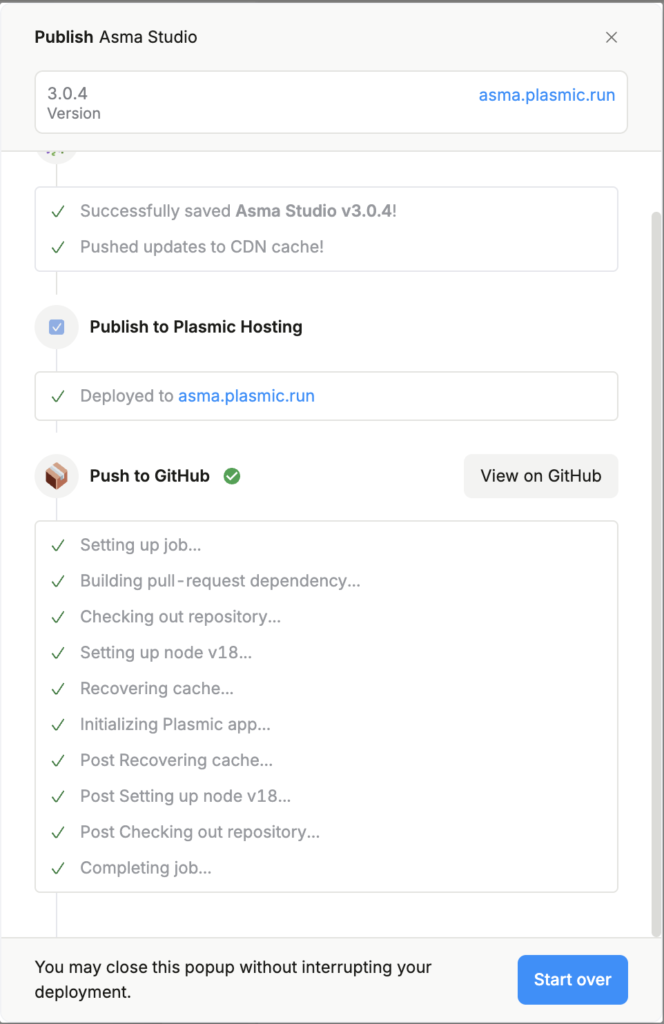 When I try to publish changes made on Plasmic Studio to the Plasmic Hosting domain, although according to the deployment log all has been successfully triggered, the website is simply not updating. (attached image of publishing window) I had considered initially that this could be a cache issue, but after troubleshooting and multiple attempts, it seems to be a bug that’s out of my reach.