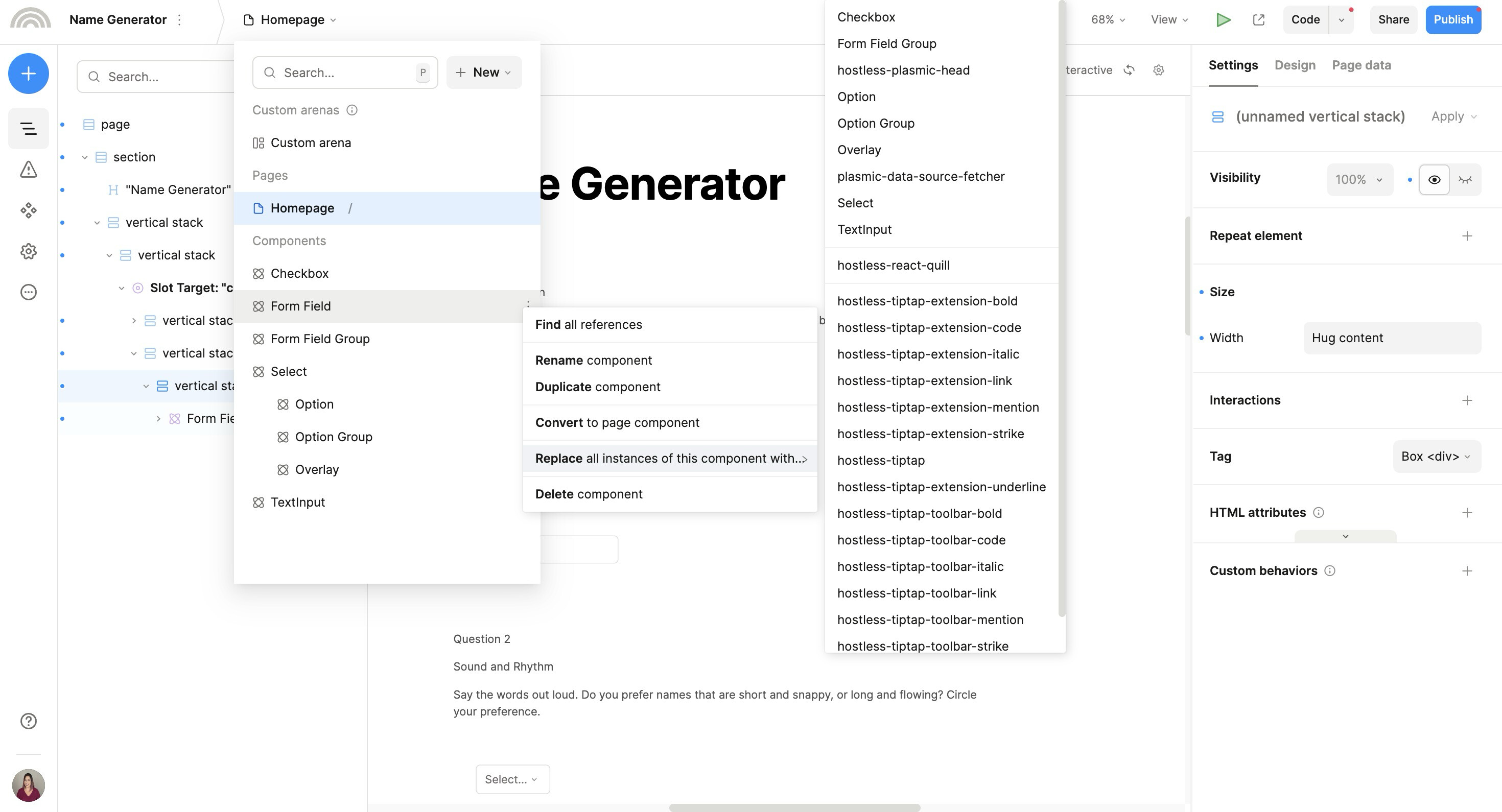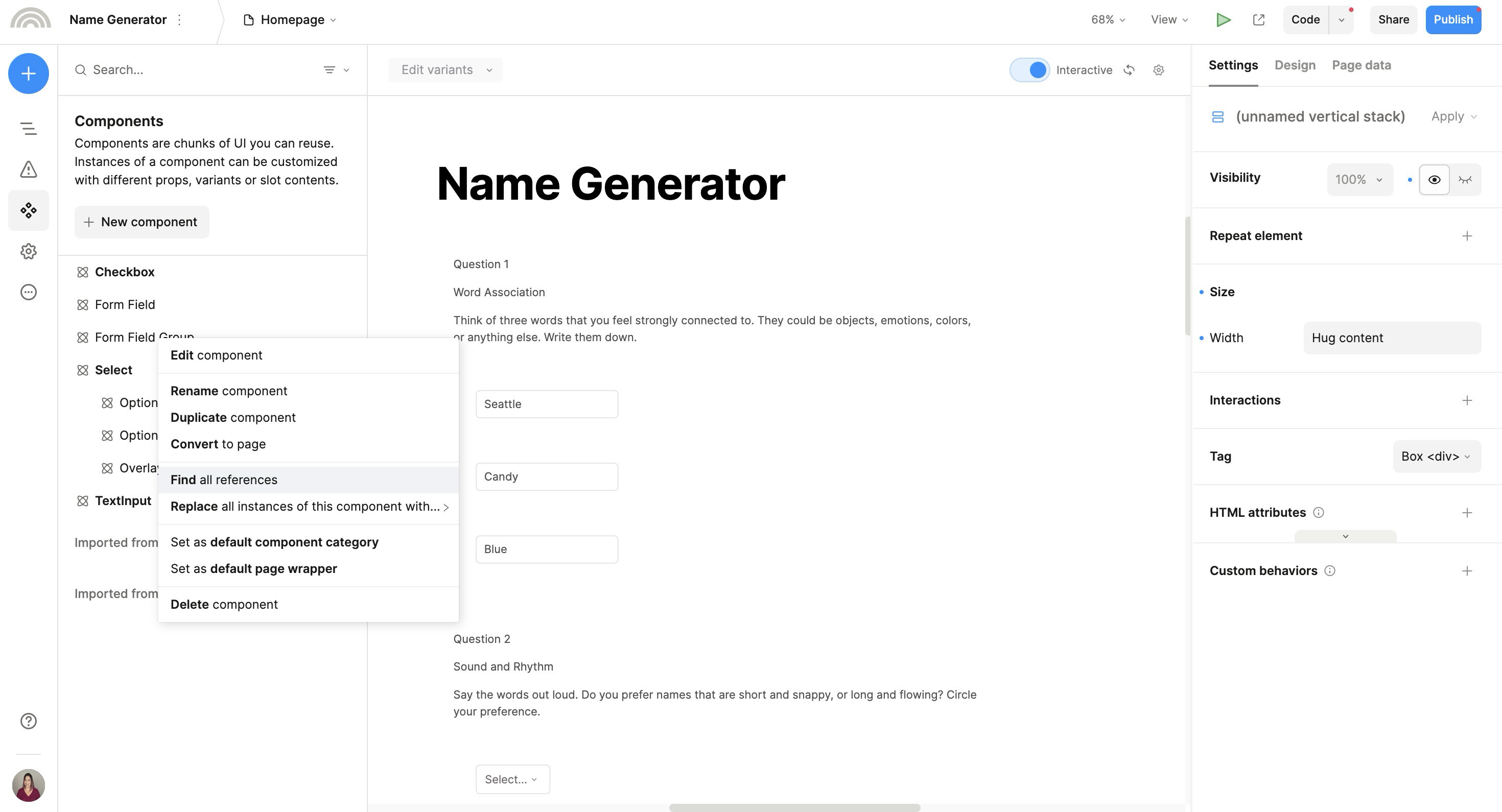 Ah, yes, thanks! I forgot i could look up my components in this menu also