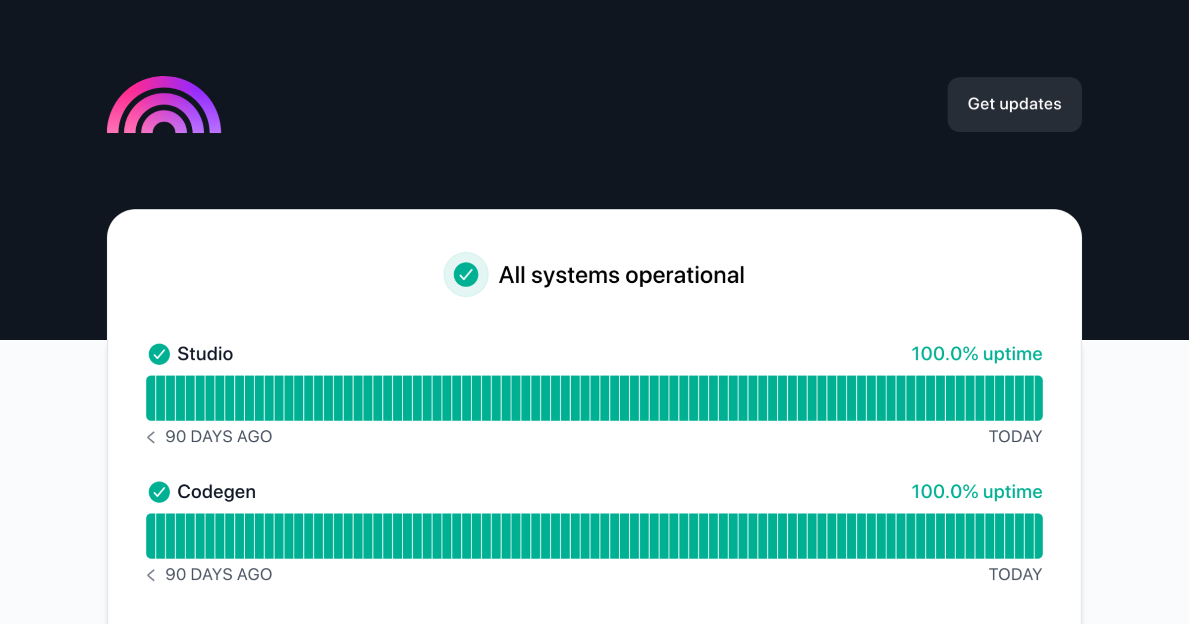 I was wondering if you have an “uptime status” or “service health” site for plasmic studio (such as https://www.githubstatus.com/). thanks!, keep this amazing product growing.