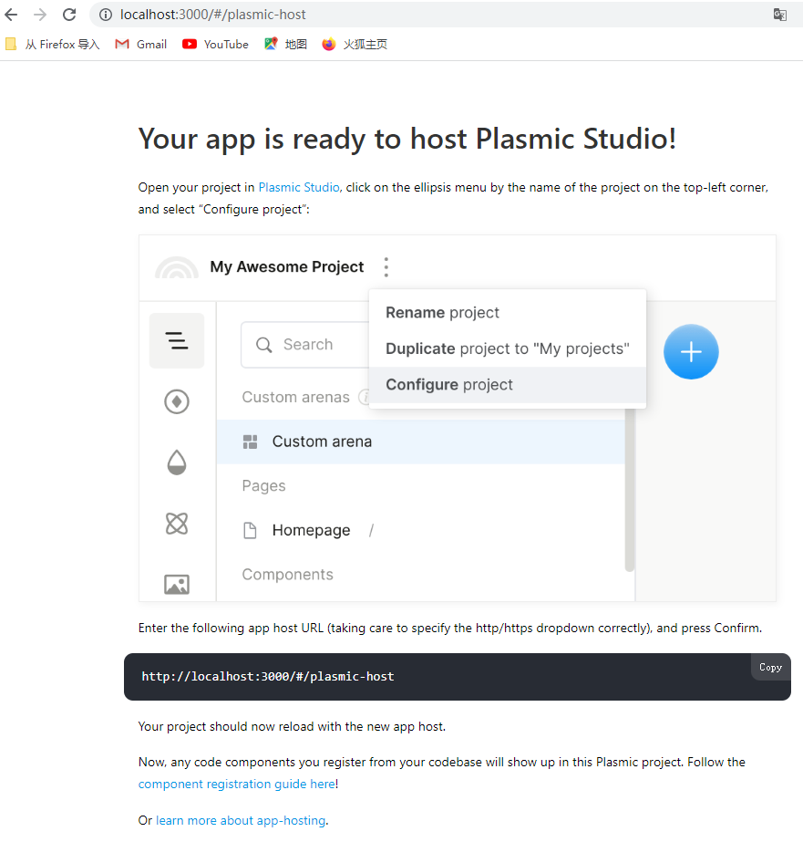 But in your original example ,configured the my-app host url :http://localhost:3000/plasmic-host