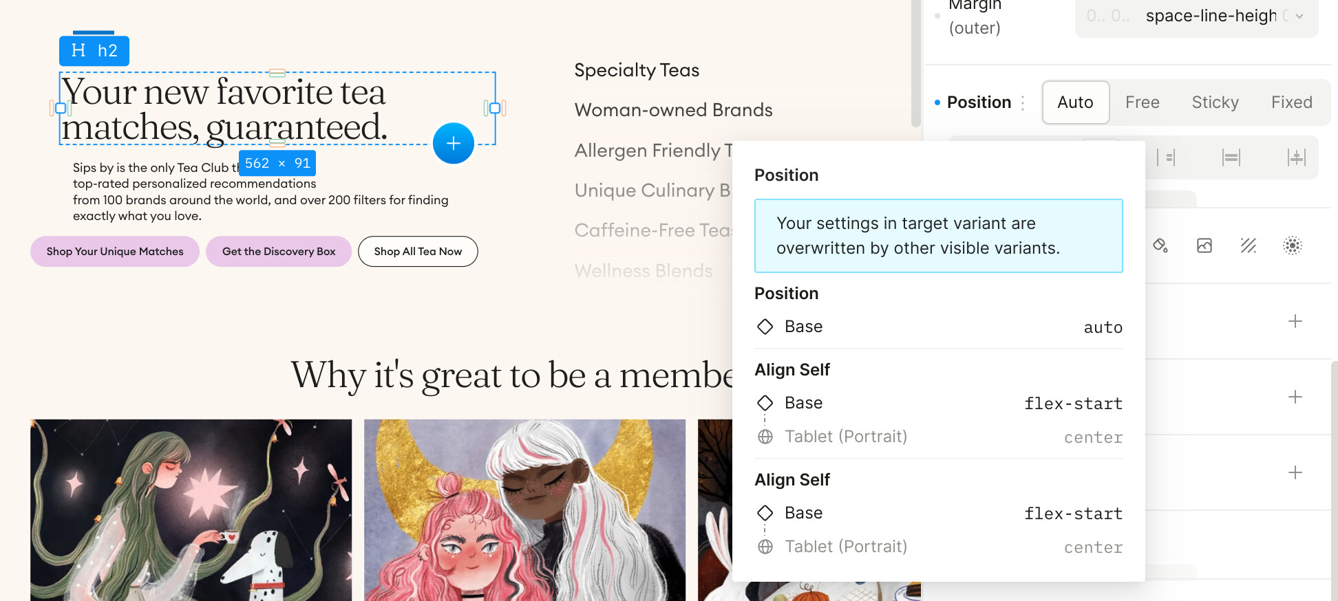 @chungwu thank you! I thought it could have something to do with align-self, but did not realize that align-self was configurable through plasmic.