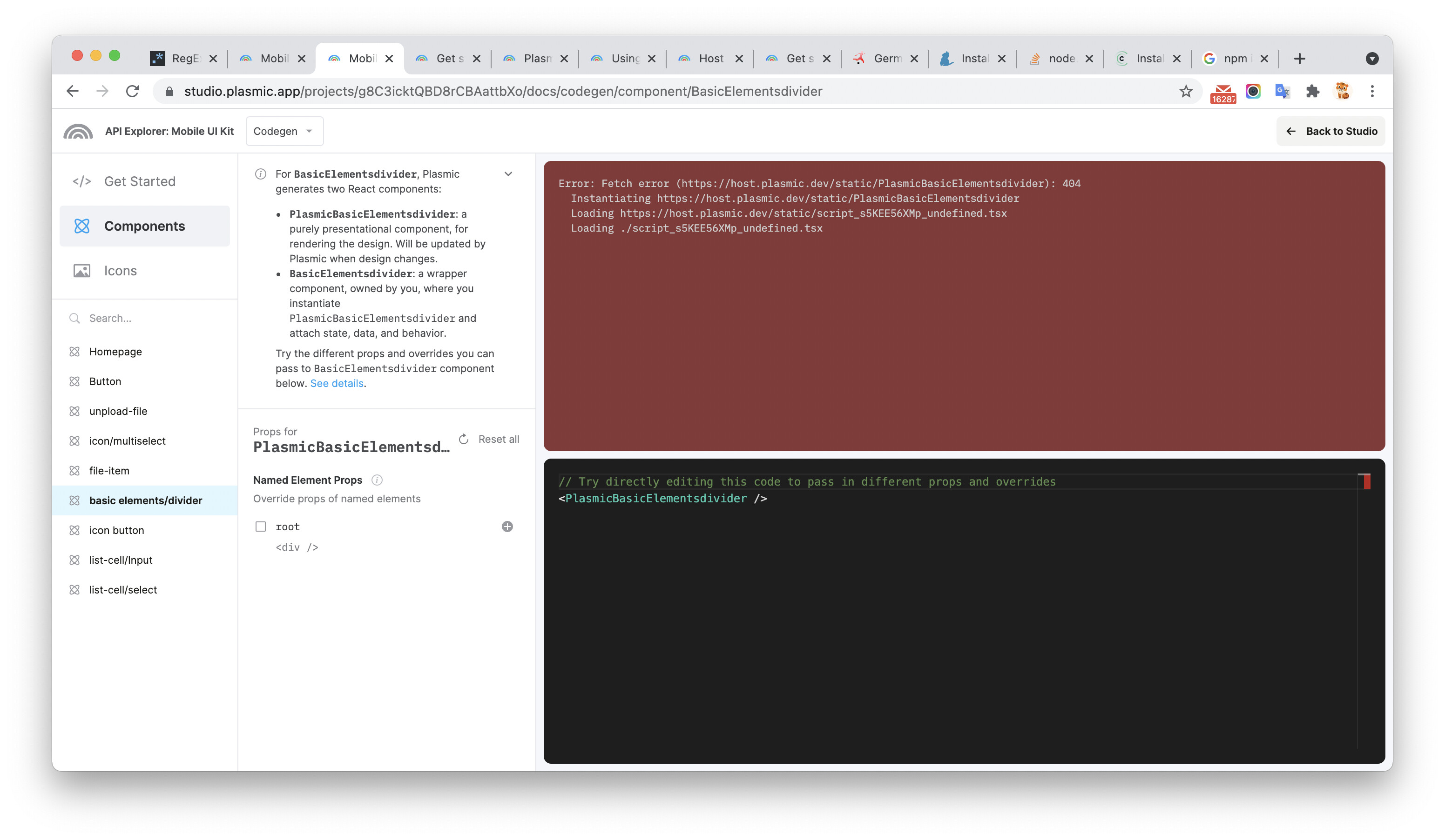 I get this error when I open Component API Exporter → Codegen → Components
