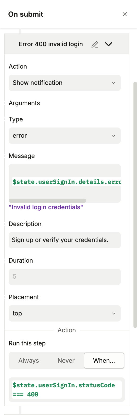 @icaro_guerra Thank you for quick response. Here is a video of the issue. In plasmic studio it works but in the published version it doesn’t. Some context: The form is a login integration to Supabase. So Im inputing a non registered email and a wrong password, where it receives a response error 400 from Supabase. Next Im showing a message with notification error.
