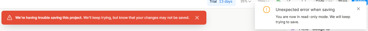 It goes into ‘read-only’ mode and my changes are not saved