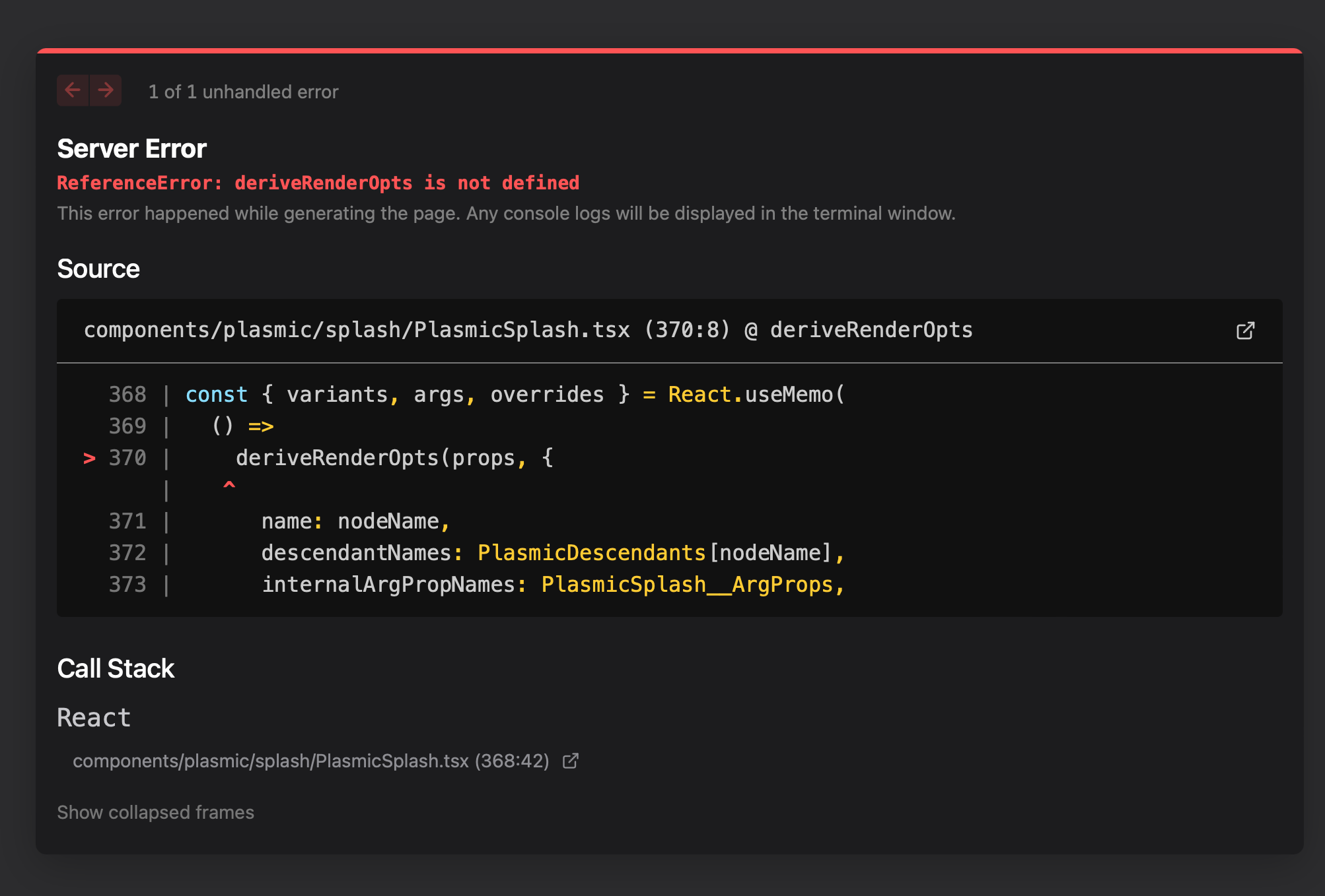 We are trying to copy codegen components into a standalone Nextjs app, but get this error related to deriveRenderOpts.