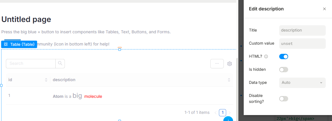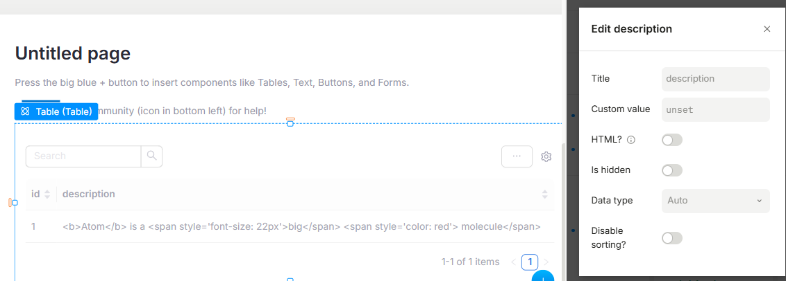 We’ve seen how effective the “Render as HTML” toggle is on the Text component for this exact purpose. Adding this same feature to the RichTable columns would be a huge improvement. It would unlock much greater flexibility for custom styling and data presentation within our tables.