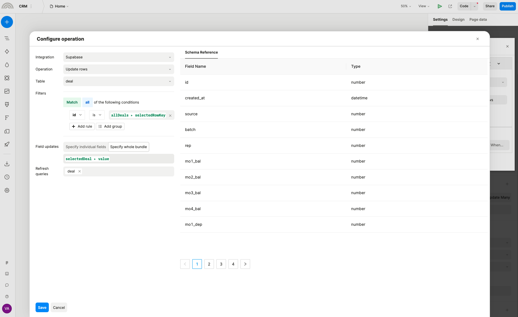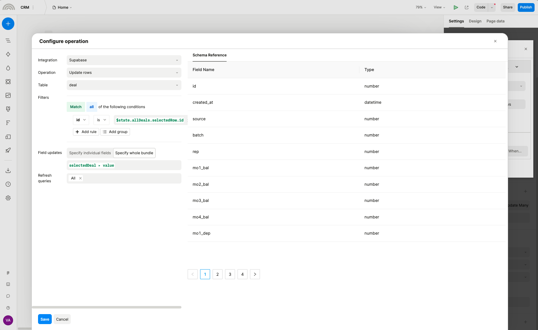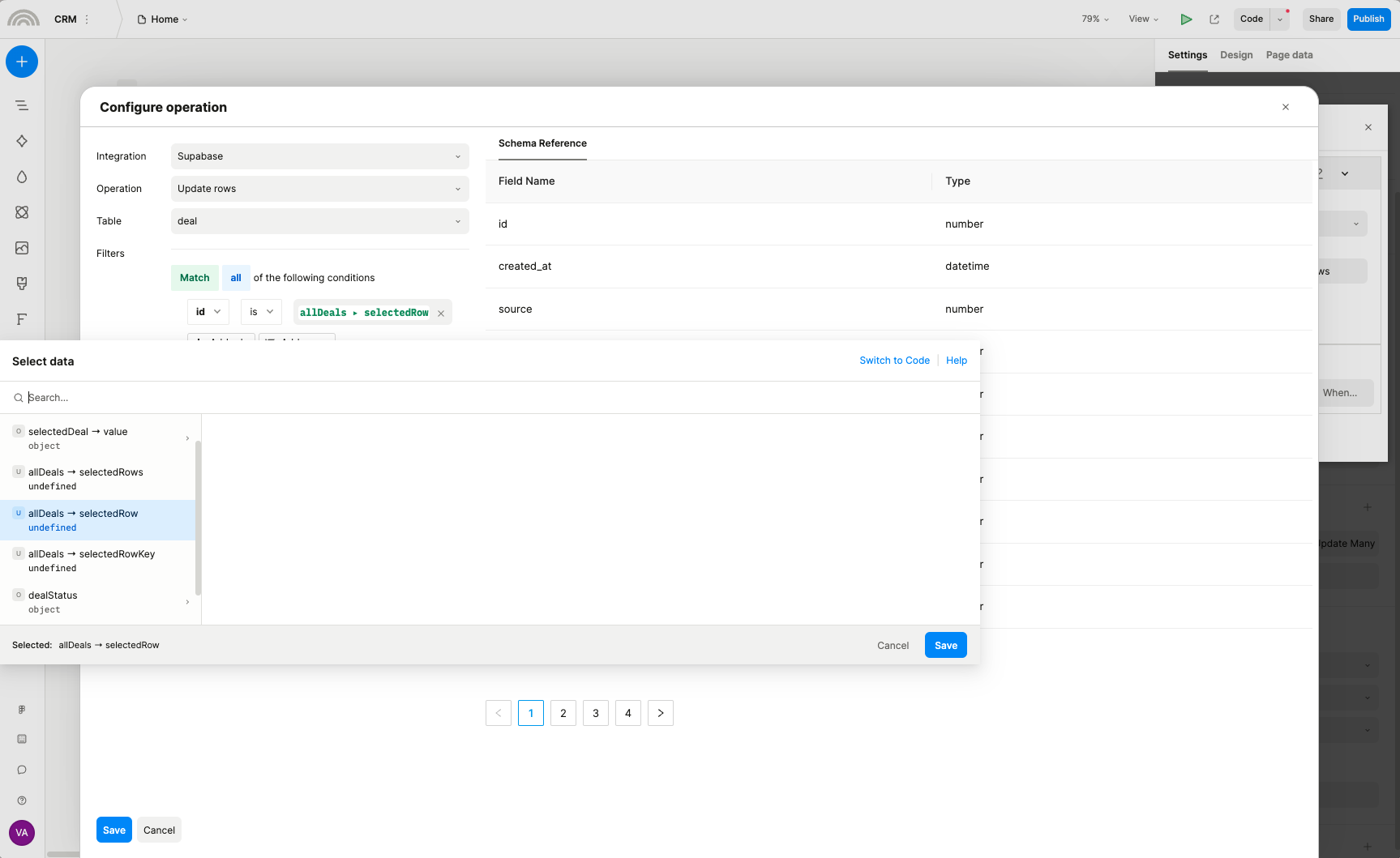 Hey, I’m having trouble filtering by the selected row. When I submit my form (“selectedDeal”), I want to send the form values to Postgres to update the row that’s selected in my table (“allDeals”). Am I doing something wrong here? Plasmic’s 5 minute app tutorial mentions the need for a filter, but doesn’t show an example of how it should be done.