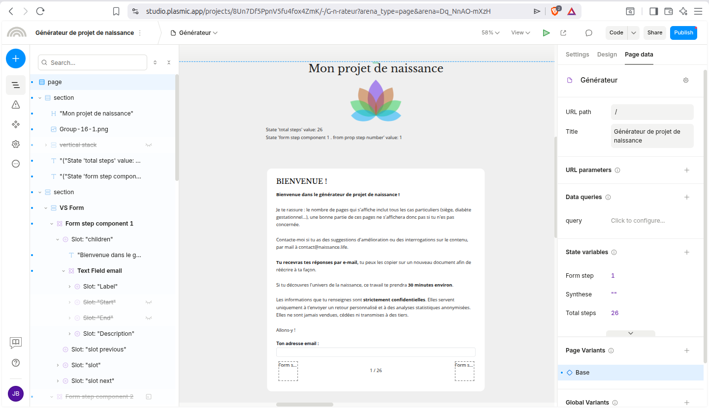 Building a multistep form, I am trying to get the value of two state variables of my page in a component, one in a text element ( $state.totalSteps ), and the other in a visibility condition ($state.formStepComponent1.formPropStepNumber).
