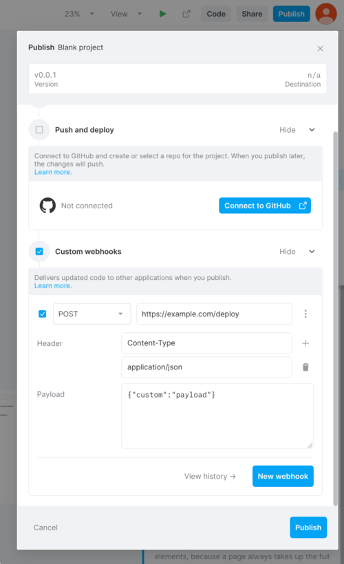 https://docs.plasmic.app/learn/publishing/#continuous-deployment-with-webhooks