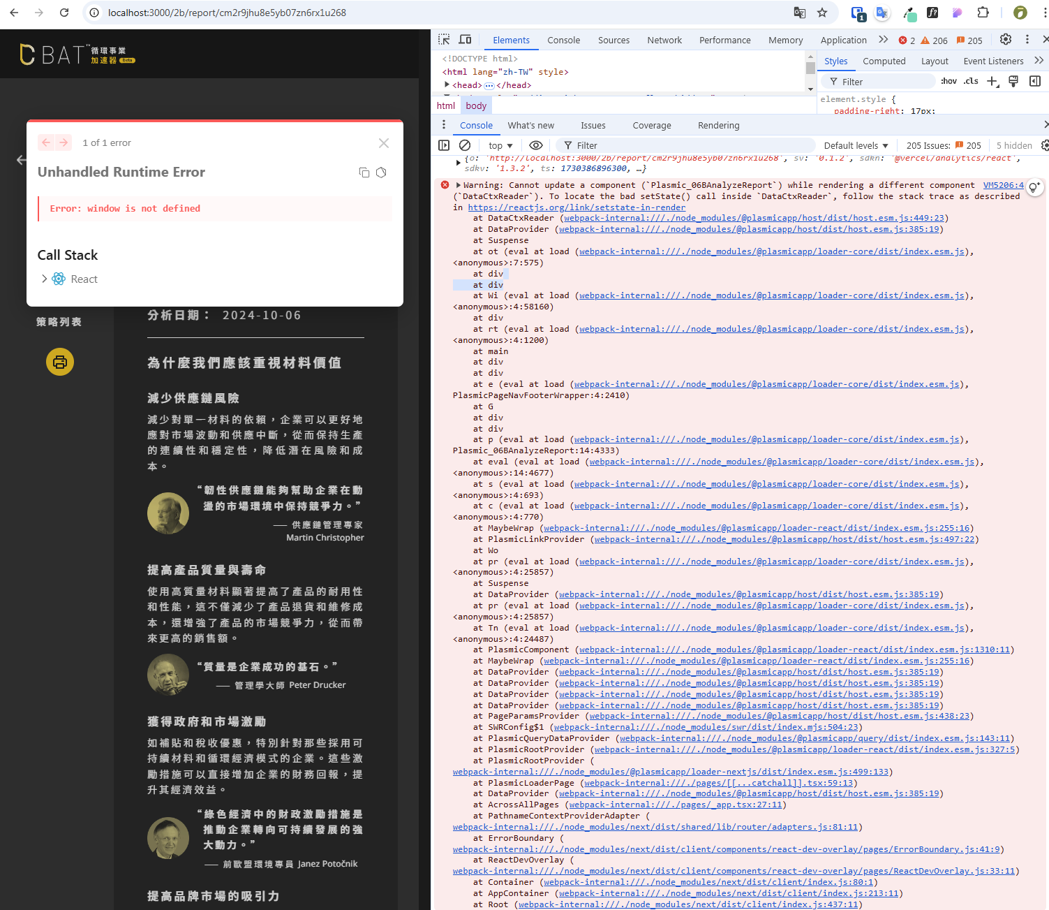 (a) PLASMIC: Encountered error when pre-rendering rt: ReferenceError: window is not defined