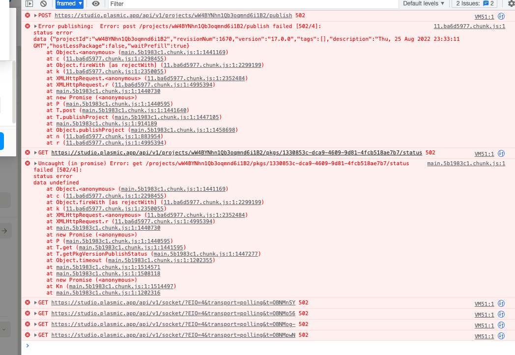 Plasmic error: Internal Server Error