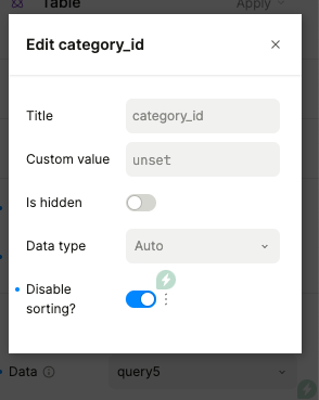 Hello @oleh_ferents, this should now be fixed. We have added a new “Disable sorting” switch in each of the table column fields, if you turn that switch on, the sorting on that column should be disabled and therefore the tooltip as well.
