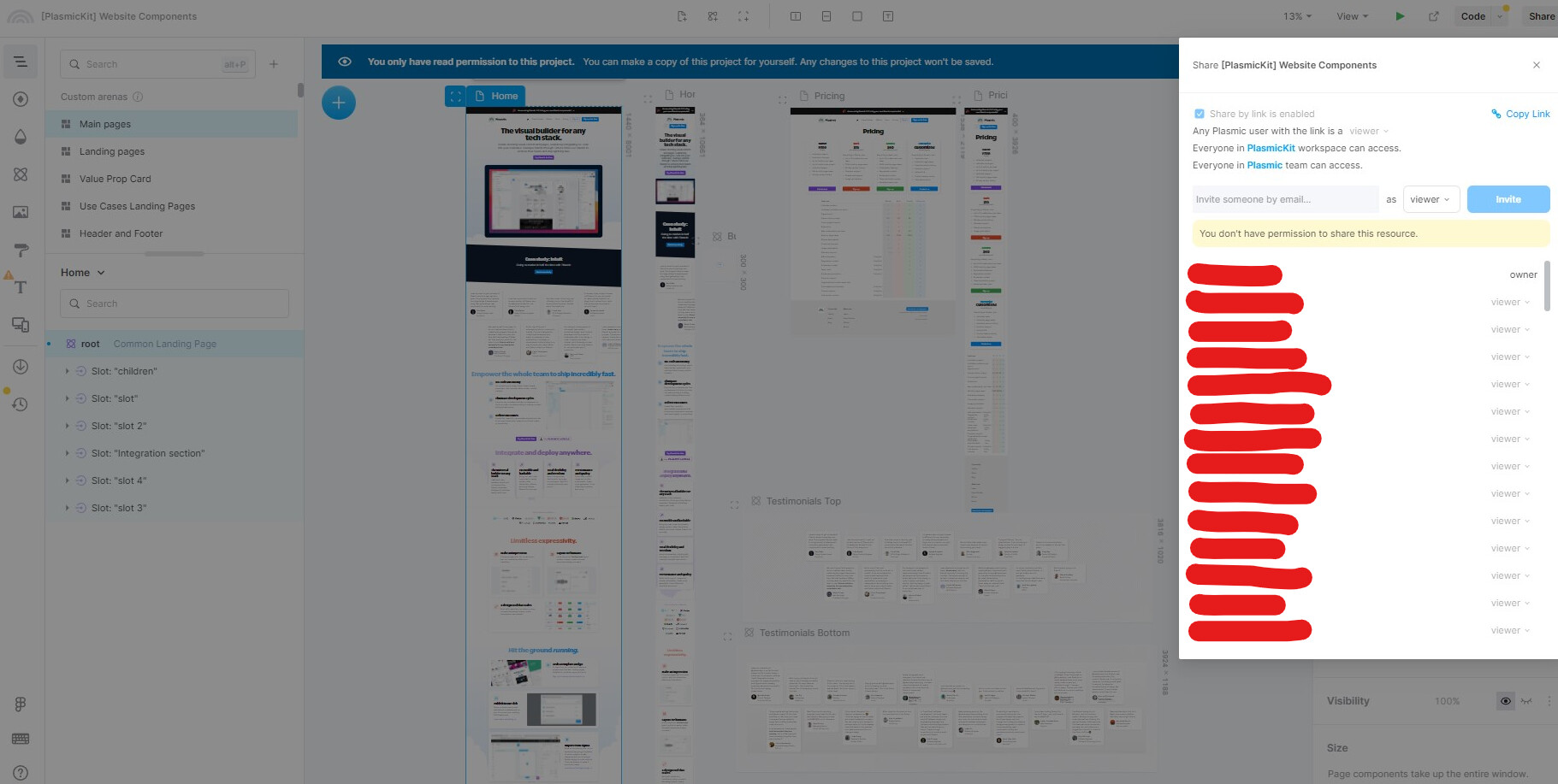 Just noticed that I can see many emails in Share menu of PlasmicKit project and other projects. How can I remove my email from that place? I don’t want to share my personal data with anyone who can access projects.