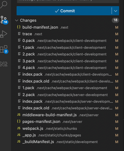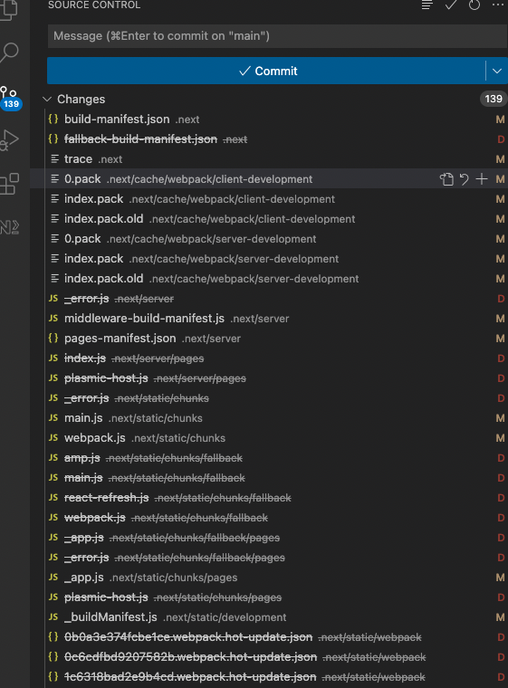 I have a Plasmic Nextjs build and I see 139 next files in my changes to commit, yet I have a gitignore with: