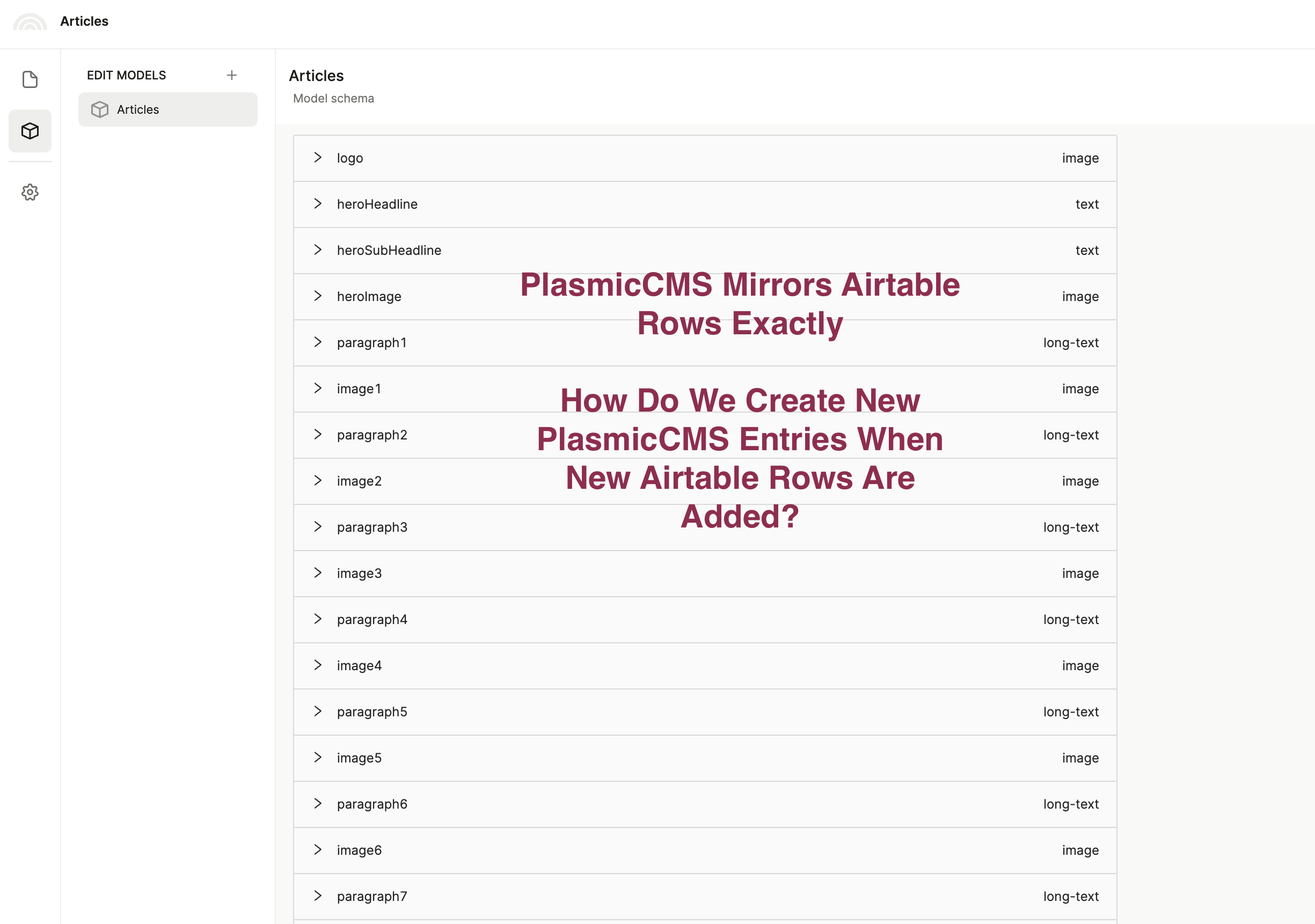 Note: the PlasmicCMS is great and I would rather store our airtable rows for each blog directly within PlasmicCMS but we had trouble populating it with our Airtable data. Bonus points if anyone has knowledge on adding airtable rows as PlasmicCMS entries.