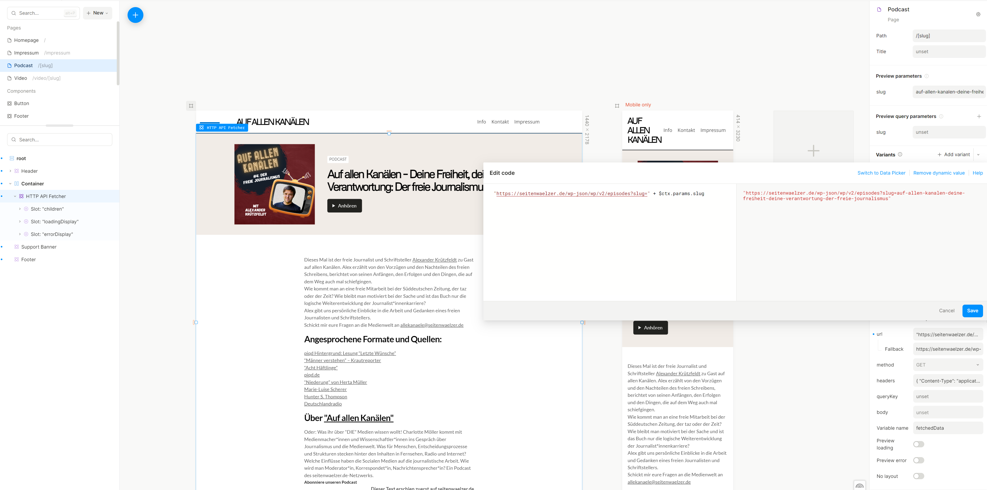 The first Screenshot shows the configuration of my Frontpage, the second one of the API fetcher of the Post page – anything I’m missing?
