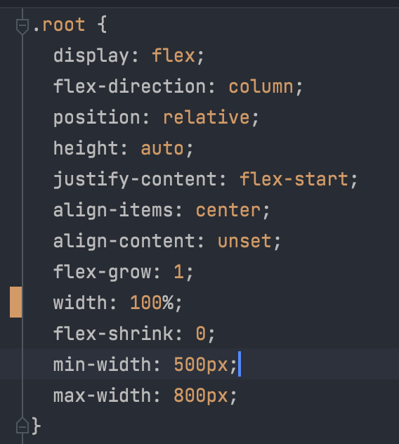 adding a width of 100% to this div doesn’t change the fact that the Section component has an innate urge to shrink down to the smallest passible size. Here’s the css of it again: