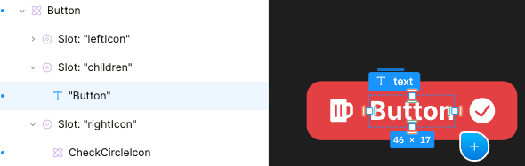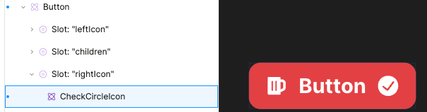 On the canvas, I can see the selected Text in a slot, but can’t see the selected Icon in a slot.