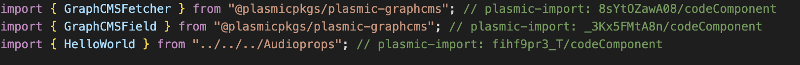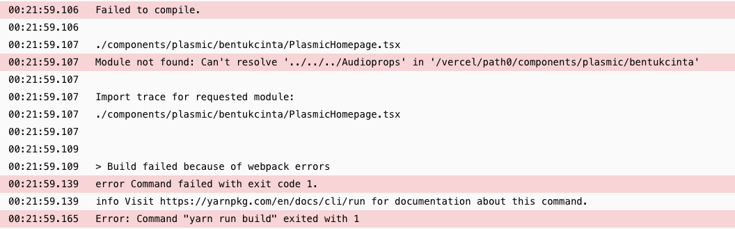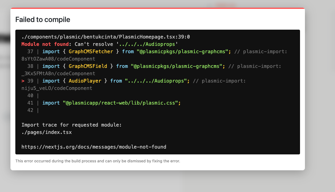 after I synced the code and I checked it on the code there was an error in the file url generated from plasmic studio “../../../Audioprops” where it should be “../../Audioprops”. after I changed the url of the file I managed to deploy my code to the server. but plasmic studio does not recognize the component anymore and displays an error message.