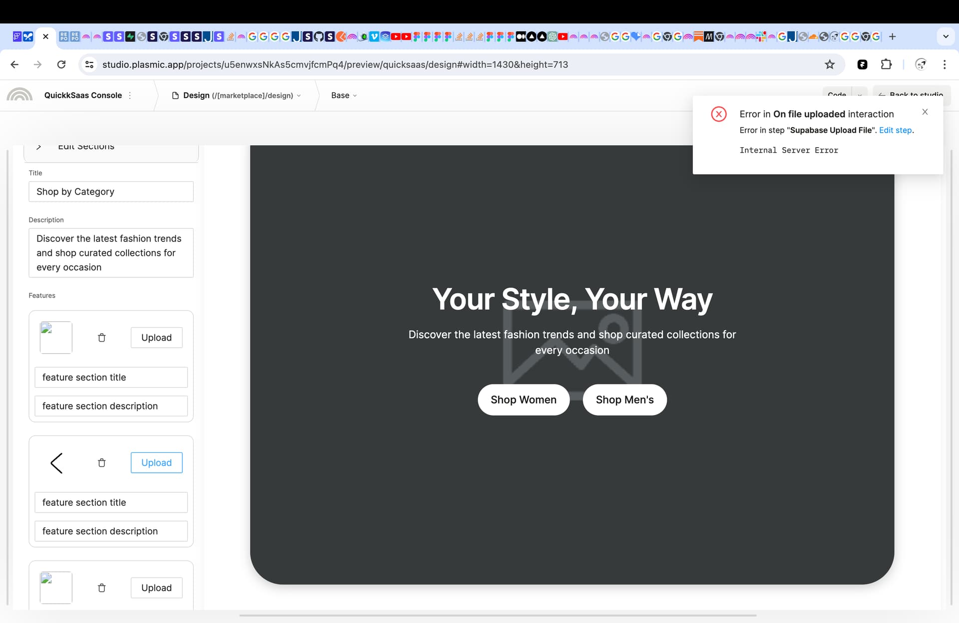 I am having the same issue. It successfully uploads the images to Supabase but it shows an error each time? @quicksaas were you able to solve this problem?