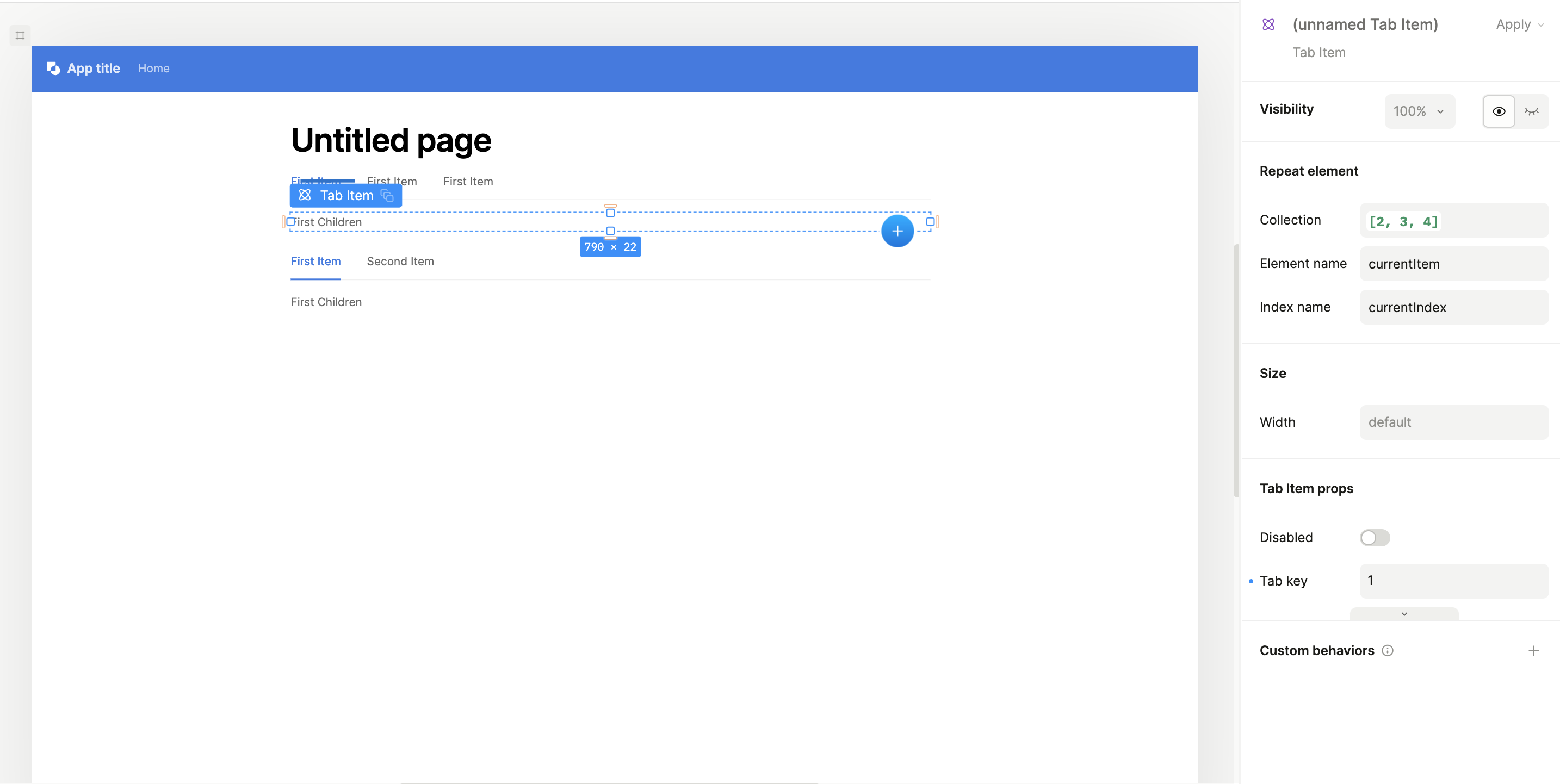 In the first, I create two tabs, one with repeat element and the other not. But when I preview my page (second screenshot), only tabs with no repeat element seems to work. Do you ever had this type of things ? Maybe I don’t use correctly the component