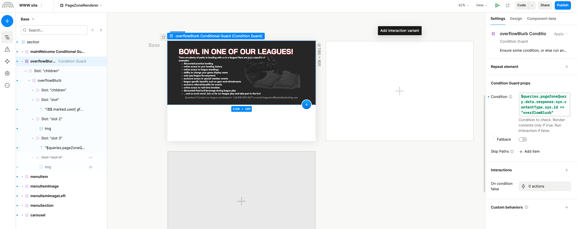 Here is what the component consists of, child elements with conditional guards based off of a nested API call for content