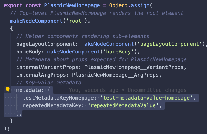 Trying to use the meta tags feature with our Codegen Next.js project. I see the keys are defined correctly in the Studio and I can see them synced in the Plasmic-owned files. But the pages coming out of build don’t have the meta tags there!