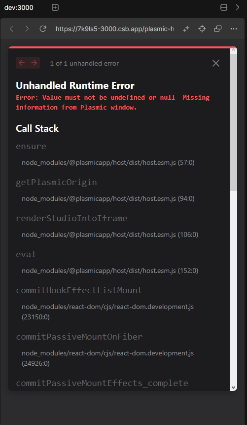 I’m trying to use codesandbox too. Unfortunately it seems plasmic-host doesn’t work properly, as @yang mentioned, and these are the errors returned on the plasmic-host page, so none of my layers load properly but the project DOES open.