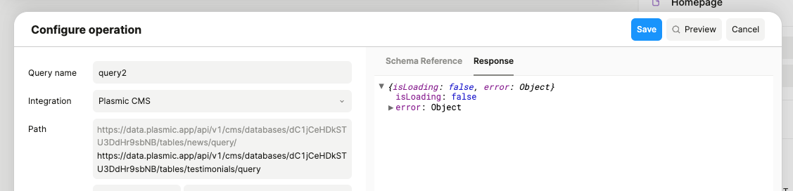 (So for instance it’s trying to fetch the URL https://data.plasmic.app/api/v1/cms/databases/dC1jCeHDkSTU3DdHr9sbNB/tables/products/queryhttps://data.plasmic.app/api/v1/cms/databases/dC1jCeHDkSTU3DdHr9sbNB/tables/products/query, i.e., a URL repeated twice, which doesn’t exist)