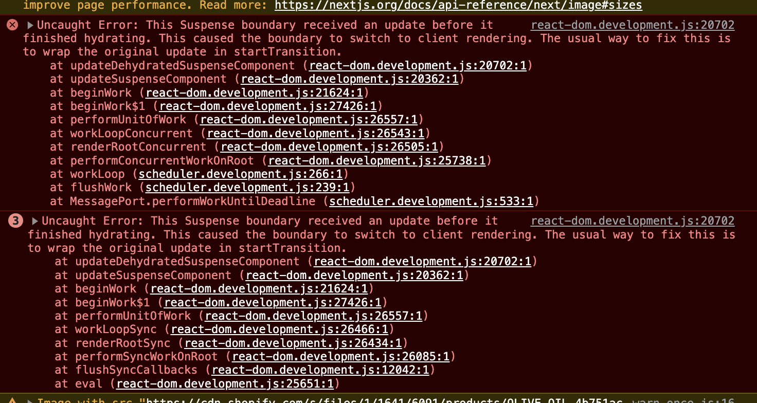 This can happen in Suspense-ful trees if the React tree is updated while hydrating… You can opt out of this by passing in: