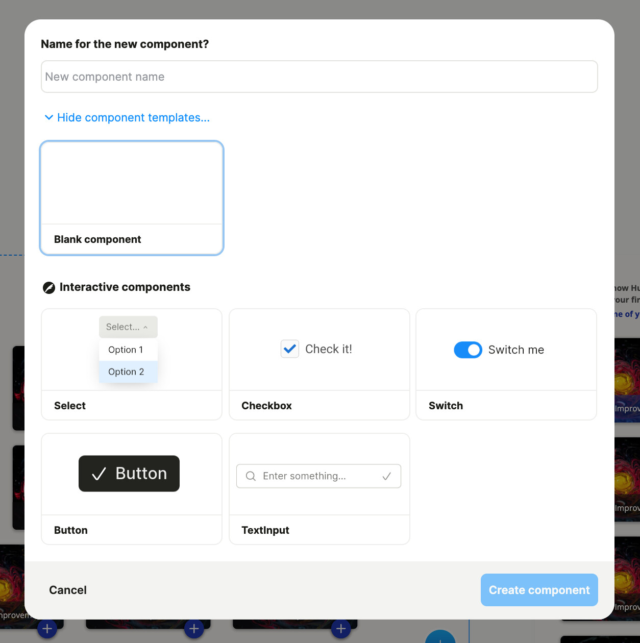 • increase the # of users who see that there is a component store / interactive components (which might be combined with the former) / template sections