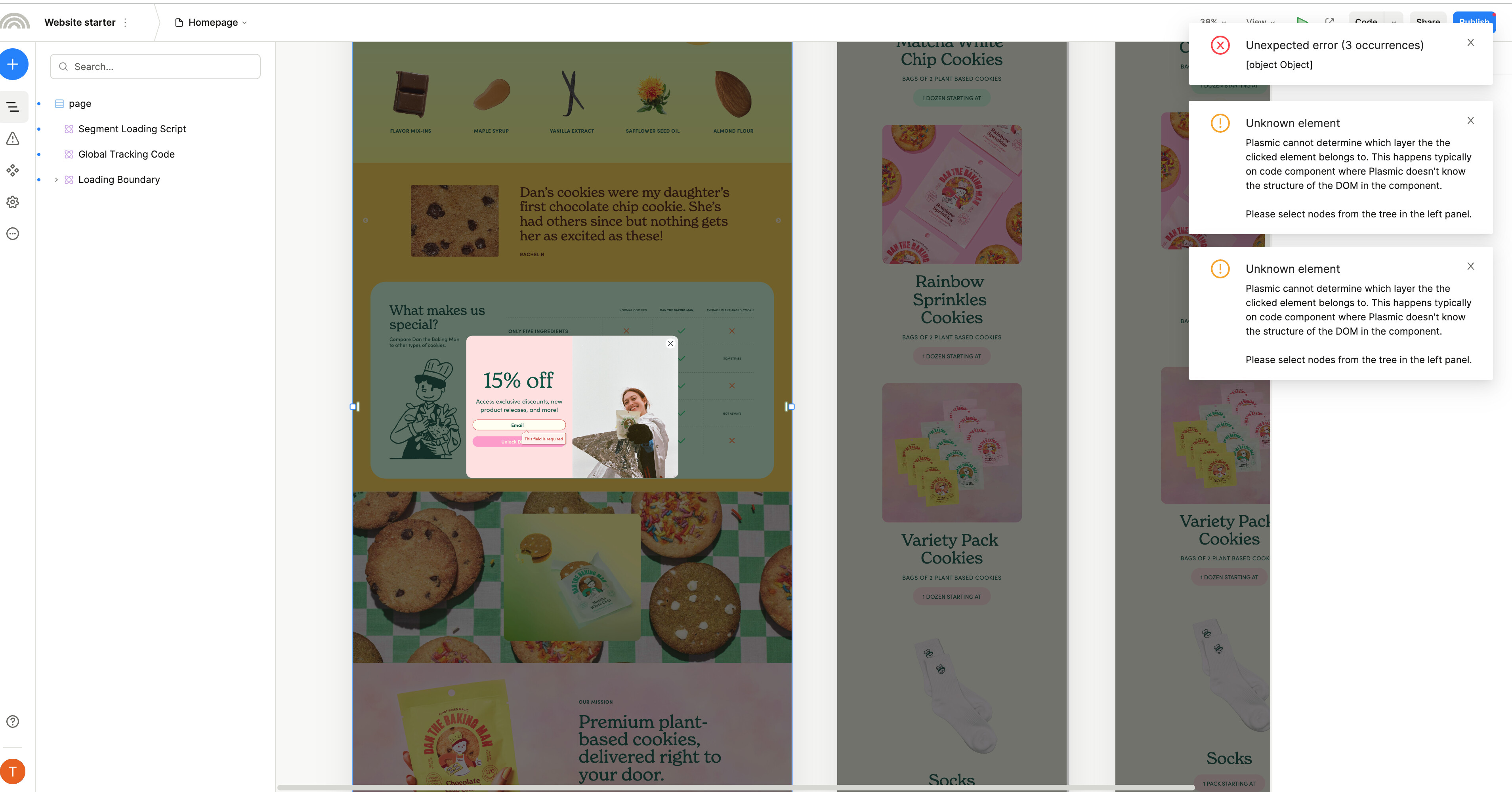 i have a pop up here, loaded externally yet plasmic is not allowing me to click anywhere