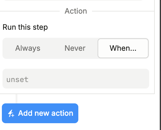 The “When” condition of Go to The page does not reference the status of previous actions.