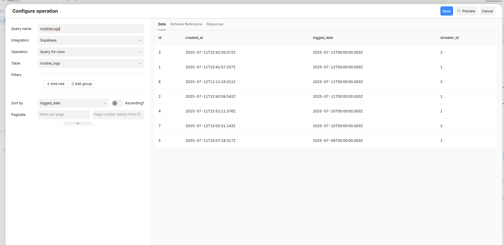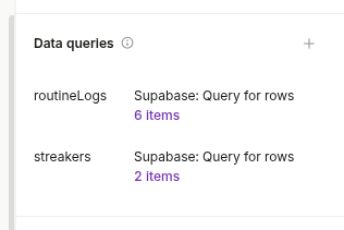 What I’m making is a simple application that relies on data in my Supabase DB. I want to set up a Data Query that fetches the current rows in my table, which I can then display in my application. When I use the application I want that if the table has been altered, and I refresh the page, it should show that new data.
