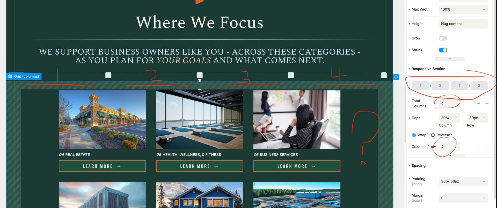 Even though we’re setting a specific number of columns (like 3, 4, or 5), the layout is rendering one column short. Examples:
