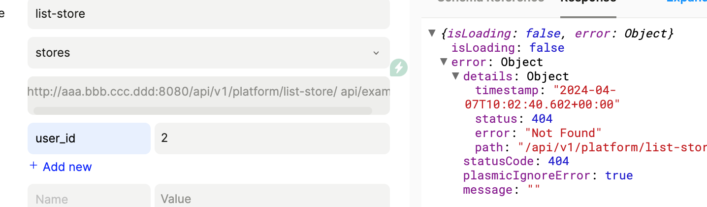 How to setup in Plasmic? When I put “http://aaa.bbb.ccc.ddd:8080/api/v1/platform/list-store” into url it shows a slash appended in Path: