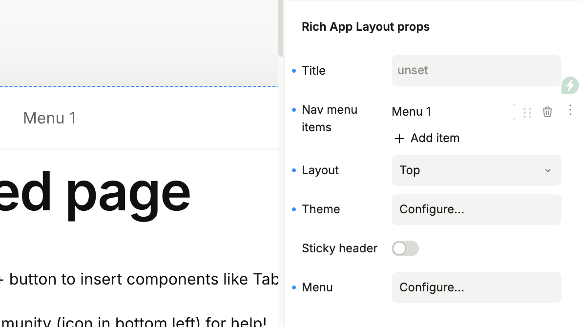 I am using the Main Page Layout component for our site. When I add more than one Nav menu item in the Rich App Layout props, the items collapse into a “More” dropdown at the standard layout width. We expected all menu items to remain visible in the navbar, which seems to be the default behavior shown in your videos.