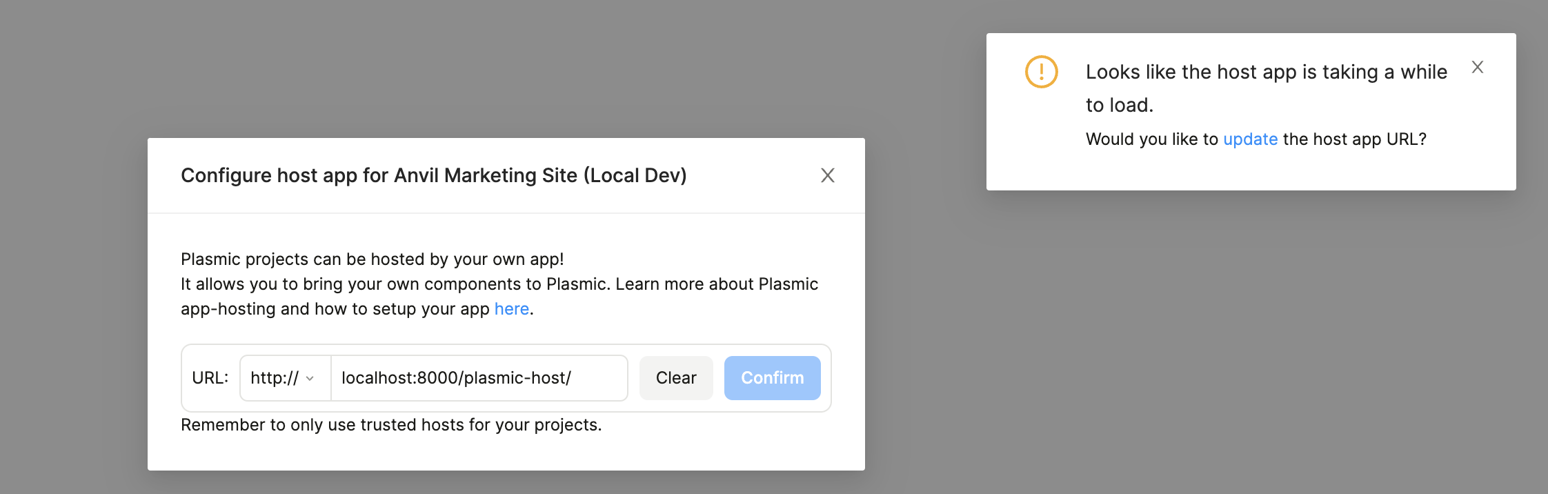 [marketingsite52312-dfplasmic.gatsbyjs.io/plasmic-host/](http://marketingsite52312-dfplasmic.gatsbyjs.io/plasmic-host/)to be the configured app-host. - I still get the screen below: