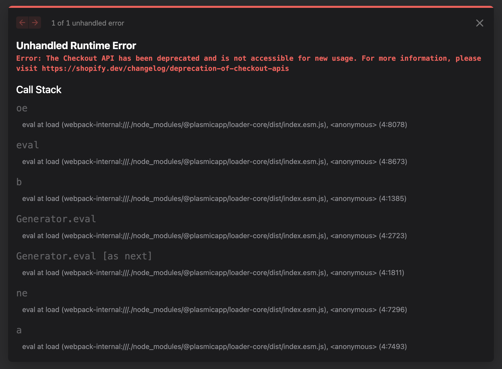 “Add to cart” using the Plasmic’s shopify integration produces the following error.